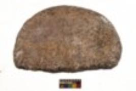 | Description / विवरण | Specimen of a roughly oval shaped smasher with coarse texture. It is brownish in colour and has flat base. |