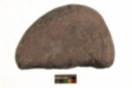 | Description / विवरण | Specimen of a roughly oval shaped smasher with partially smooth texture. It is brownish in colour and has flat base. |