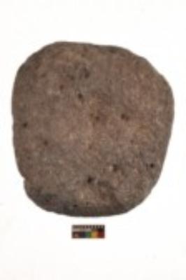 | Description / विवरण | Specimen of a roughly oval shaped smasher with rough texture. It is brownish in colour and has flat base. |