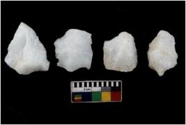 | Description / विवरण | There are n 4 of utilized worked cores and have irregular scar pattern on both dorsal and ventral sides. They have sharp edges. |