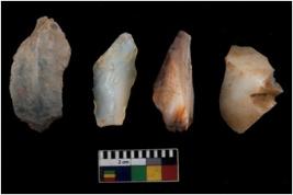 | Description / विवरण | There are n 4 utilized flake cores. There are multi directional irregular scar pattern on them. Two have sharp edges and two are tapering at one end. |
