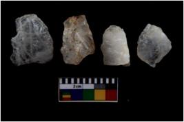 | Description / विवरण | There are n 4 utilized flake cores. Two have blunted edges and two have round edges. |