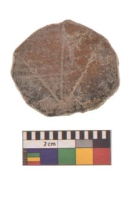 | Description / विवरण | Specimen of potter tool with black decorative geometric Net Pattern painting. |