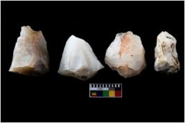 | Description / विवरण | Four utilised worked cores with sharp edges. Flakes have been removed from few sides. |