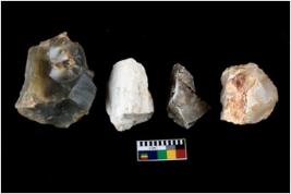 | Description / विवरण | Four utilised worked cores with sharp edges. Flakes have been removed from few sides. |