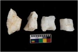 | Description / विवरण | There are n 4 of utilized worked cores and have irregular dominant scar pattern. Two have a broken tip. |