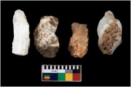 | Description / विवरण | There are n 4 utilized flake cores. Out of them two are made up of Chert and two are made up of Chalcedony. There are multi directional irregular scar pattern on them. One has sharp edge and three are tapering at one end. |