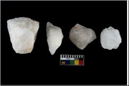 | Description / विवरण | Specimen of cores with visible weathered cortex and few broad fluted marks. Almost all are irregular in shape and size.One is tapering at one end. |