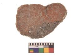 | Description / विवरण | Specimen of ground disc hopscotch made from a red ware. It has jagged edges with sign of chipping. It is rounded in shape. |