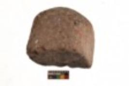 | Description / विवरण | Specimen of an half circular shaped saddle quern. It is brownish in colour and rough surface and it has flat base. |