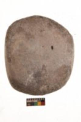 | Description / विवरण | Specimen of a roughly round shaped smasher. It is light brown in colour and partially smooth surface and it has flat base. |