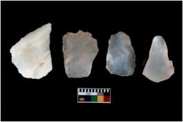 | Description / विवरण | There are n 4 cores; There are multidirectional irregular scar pattern on them. Some of them are tapering at one end. two of them flat thick bottom and pointed functional top. |