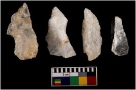 | Description / विवरण | There are n 4 of utilized worked cores. They have sharp edges and some are tapering at one end. They show dominant irregular scar pattern. |