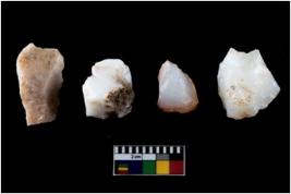 | Description / विवरण | Four utilised worked cores with sharp edges. Some of them are tapering at one end. Removal of flakes from few sides. |