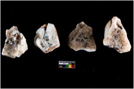 | Description / विवरण | Four utilised worked cores with sharp edges. Some of them are tapering at one end. Removal of flakes from few sides. |