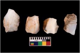 | Description / विवरण | Four utilised worked cores with sharp edges. Some of them are tapering at one end. Removal of flakes from few sides. |