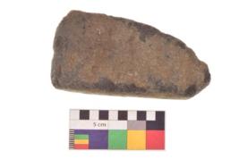 | Description / विवरण | Specimen of an handaxe with one elonagted side for holding purpose. It is dark brown in colour and smooth in texture. |
