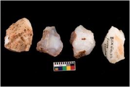 | Description / विवरण | Four utilised worked cores with sharp edges. Some of them are tapering at one end. Removal of flakes from few sides. |