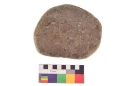 | Description / विवरण | Specimen of a roughly round shaped hammerstone with smooth texture. It is brownish in colour and round in cross section. |