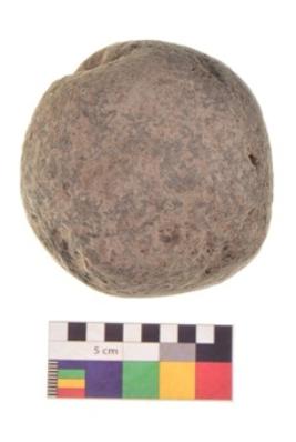 | Description / विवरण | Specimen of a roughly round shaped hammerstone with smooth texture. It is brownish in colour and round in cross section. |