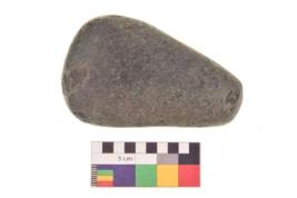 | Description / विवरण | Specimen of an handaxe with one elonagted side for holding purpose. . It is blackish in colour and smooth in texture. |