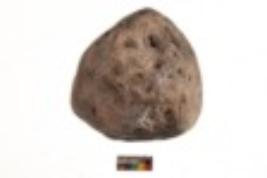 | Description / विवरण | Specimen of a roughly round shaped hammerstone. It is brownish in colour and rough surface. It is round in cross section. |