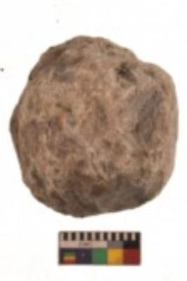 | Description / विवरण | Specimen of a roughly round shaped hammerstone. It is brownish in colour and rough surface. |