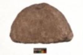 | Description / विवरण | Specimen of a roughly oval shaped smasher with uneven partially smooth surface. It is brownish in colour and has flat base. |