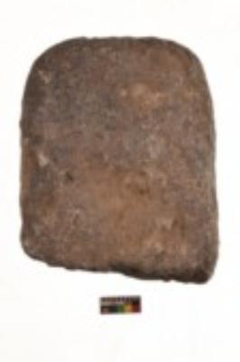 | Description / विवरण | Specimen of a roughly rectangular shaped saddle quern. It is brown in colour and rough surface. It has flat base. |