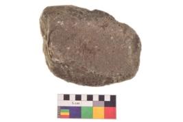 | Description / विवरण | Specimen of an uneven shaped grinding stone. It is brownish in colour and smooth in texture. It has flat base. |