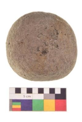 | Description / विवरण | Specimen of a roughly round shaped hammerstone with smooth texture. It is brownish in colour and round in cross section. |