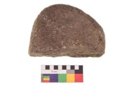 | Description / विवरण | Specimen of an uneven shaped grinding stone. It is brownish in colour and smooth in texture. It has flat base. |