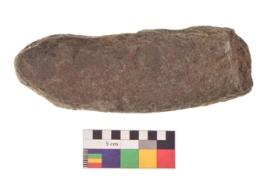 | Description / विवरण | Specimen of a roughly oval shaped saddle quern. It is brownish in colour and smooth in texture. It is round in cross section. |