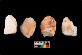 | Description / विवरण | Four utilised worked cores with sharp edges. Some of them are tapering at one end. Removal of flakes from few sides. |