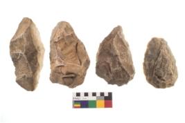 | Description / विवरण | There are n 4 of utilized worked cores and show irregular dominant scar pattern on both dorsal and ventral side. One has a broken tip. |