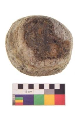 | Description / विवरण | Specimen of a roughly round shaped hammerstone with smooth texture. It is brownish in colour and round in cross section. |