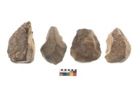 | Description / विवरण | There are n 4 of utilized worked cores and irregular scar pattern. Two have a broken tip. |