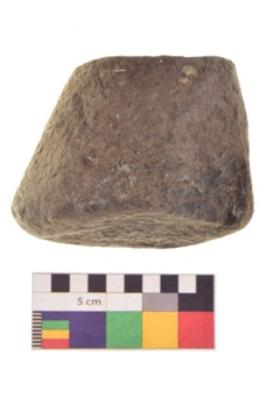 | Description / विवरण | Specimen of an uneven shaped smasher. It is brownish in colour and smooth in texture. It has flat base. |