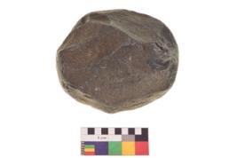 | Description / विवरण | Specimen of a roughly round shaped hammerstone with smooth texture. It is brownish in colour and round in cross section. |
