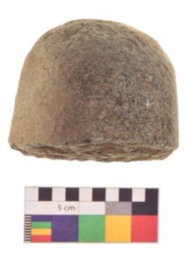 | Description / विवरण | Specimen of a roughly oval shaped saddle quern. It is creamish in colour and smooth in texture. It is round in cross section. |