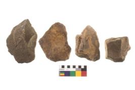 | Description / विवरण | There are n 4 of utilized worked cores and show irregular scar pattern. Three are tapering at one end and one has a broken tip. |