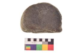 | Description / विवरण | Specimen of an uneven shaped grinding stone. It is brownish in colour and smooth in texture. It has flat base. |