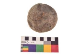 | Description / विवरण | Specimen of a roughly round shaped hammerstone with smooth texture. It is brownish in colour and round in cross section. |