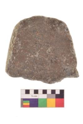 | Description / विवरण | Specimen of an uneven shaped grinding stone. It is brownish in colour and smooth in texture. It has flat base. |