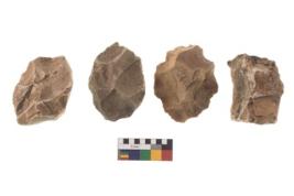 | Description / विवरण | There are n 4 of utilized worked cores and show irregular dominant scar pattern on both dorsal and ventral side. One has a flat base. |