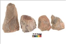| Description / विवरण | Specimen of a Irregular flaked pebble with projected pointed top and flat bottom. |