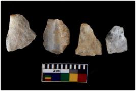 | Description / विवरण | There are n 4 utilized flake cores. One is tapering at one end and three have blunted edges. |