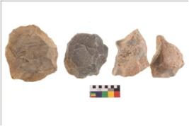 | Description / विवरण | There are n 4 flakes tool; there are multidirectional irregular scar pattern on them; made of short flakes and all four have tapering edges. |