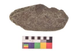 | Description / विवरण | Specimen of an handaxe with one elonagted side for holding purpose. . It is blackish in colour and smooth in texture. |