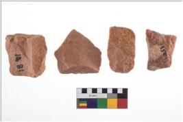 | Description / विवरण | There are n 4 utilized flake cores. There are multidirectional irregular scar pattern on both dorsal and ventral face of the flake cores. One has sharp edges and three have blunted edges. |